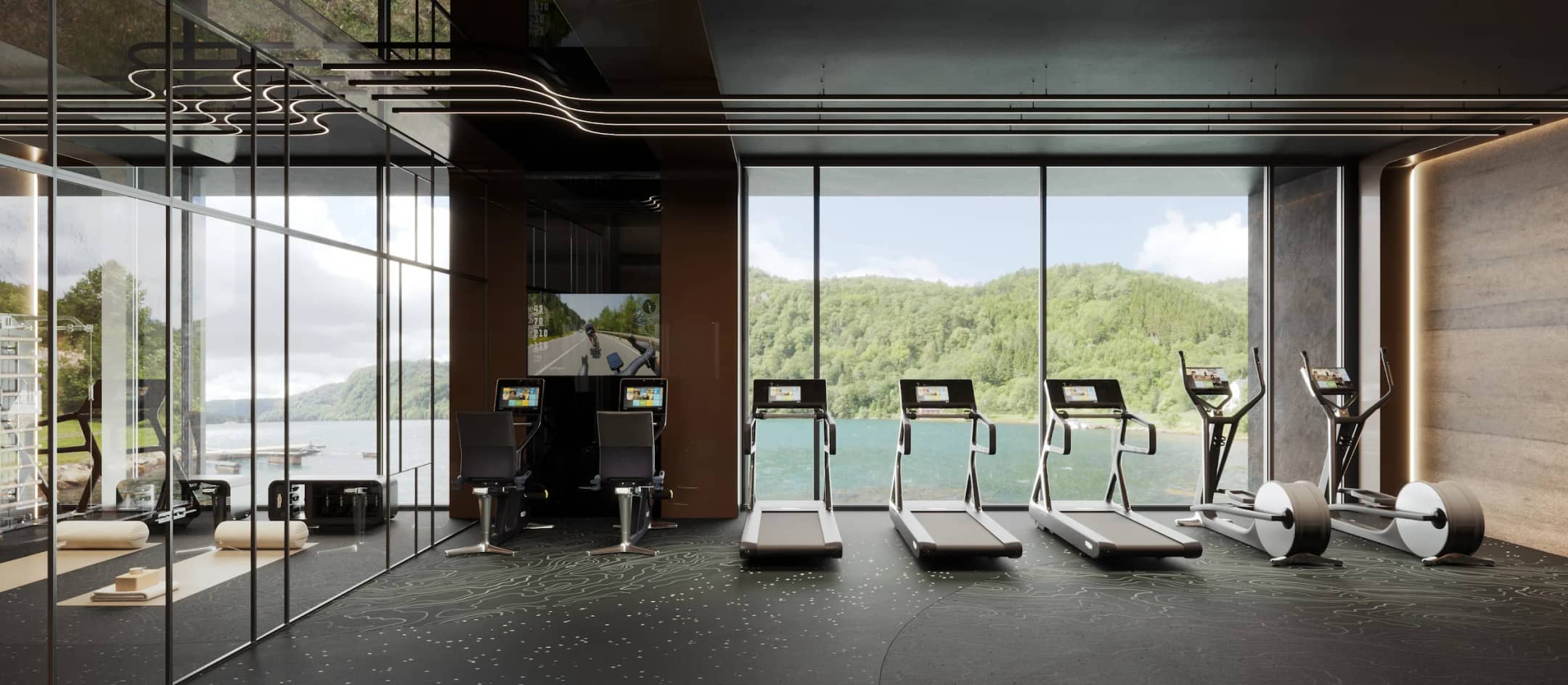 Фитнес-центр нового поколения с бионическим дизайном и природными видами.