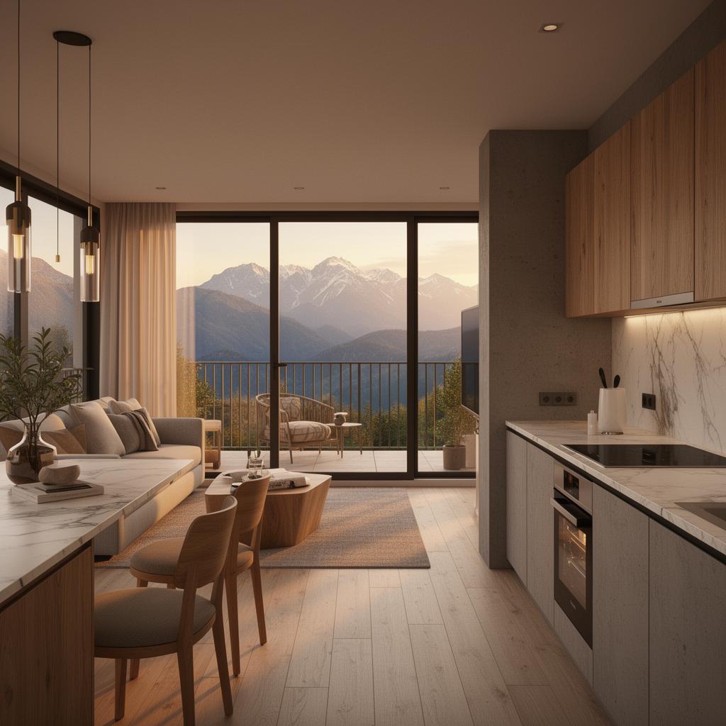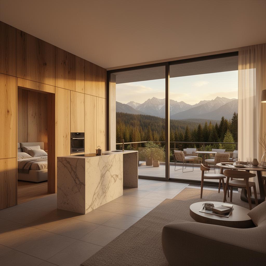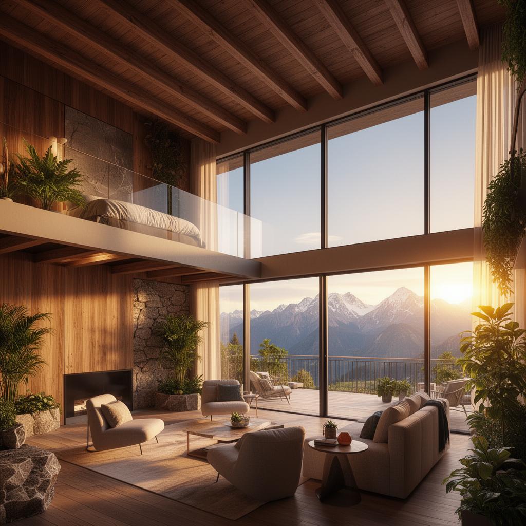 - Панорамные окна с видом на горы